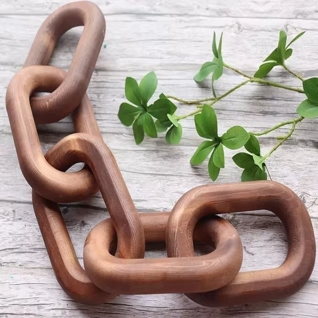 Adicione um toque sofisticado e contemporâneo à sua decoração com o nosso adorno de corrente em madeira maciça. Cada peça apresenta um acabamento natural e elegante, realçando a beleza e a textura única da madeira.