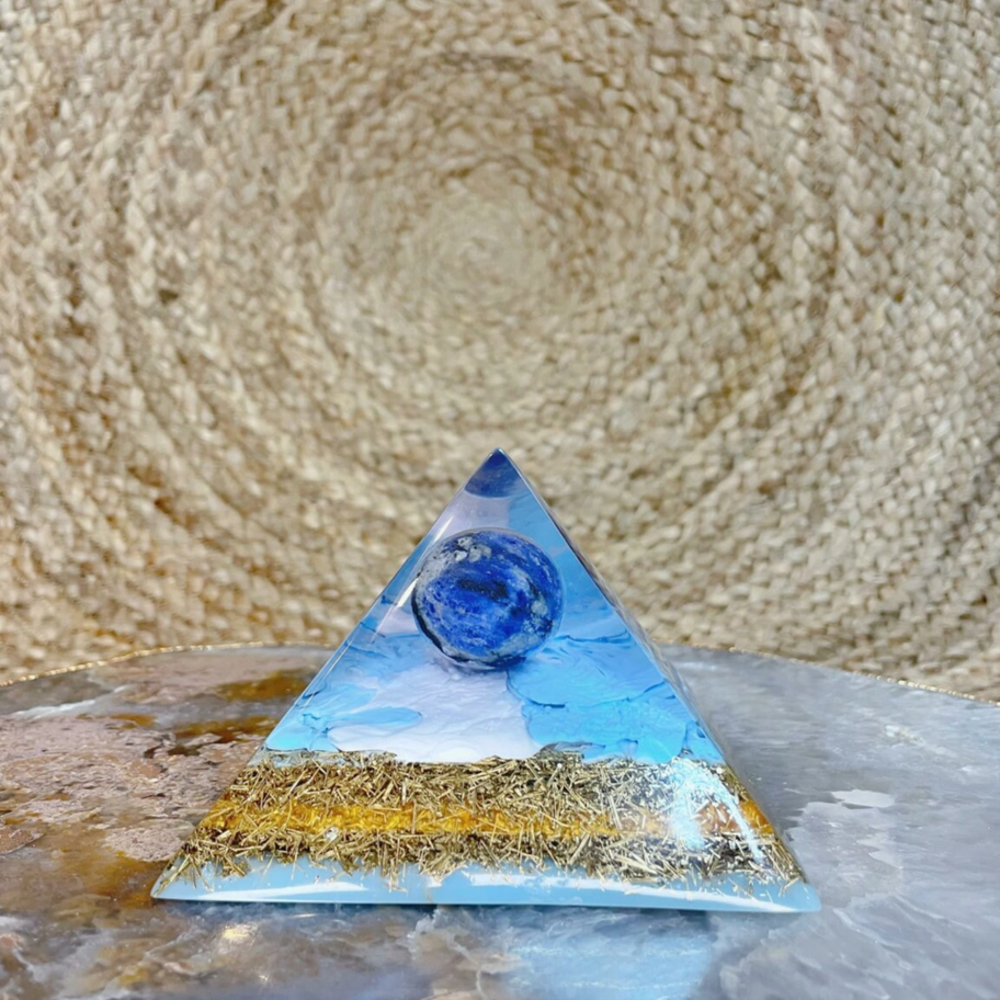 Decoração Exclusiva: A combinação única de resina e pedras naturais confere à pirâmide um charme distinto e elegante, adicionando um toque de sofisticação à decoração do seu espaço.